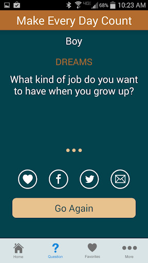 Tired of having the same conversation with your kids? Try the Make Every Day Count app. Filled with conversation starters for parents and kids, this Focus on the Family product is designed to strengthen family talk time with a fun and easy way to communicate with kids.