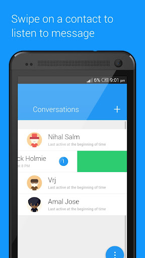 Tap a contact to record your message and swipe on it to listen to a message that you received.