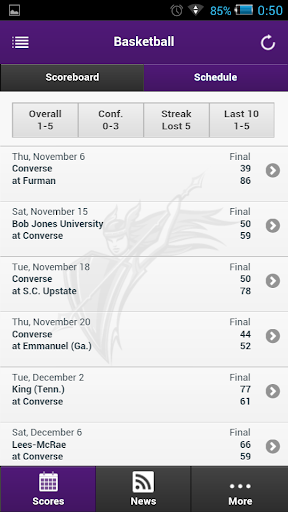 Created by PrestoSports in partnership with Converse College, the mobile app gives fans access to score updates, statistics and game recaps.