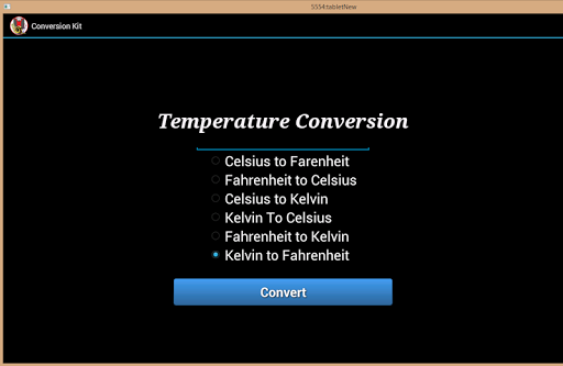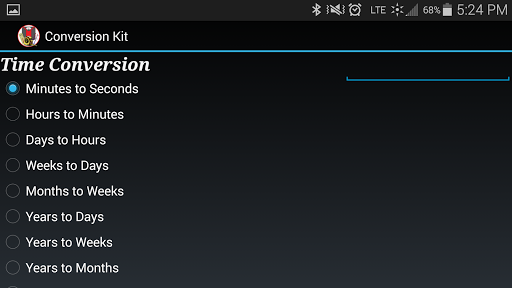 The application that makes life easier when it comes to convert certain units of measurement. With this application you will save time whenever you need to convert on the fly. Its easy and simple, just select a type of conversion and then followed by the number to be converted, select the unit of conversion you want to be calculated and you are done. It couldn't be easier!!!!.
