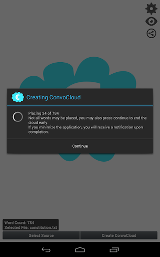 Convo Cloud is an application to create colorful text based images with words taken from conversations with your friends or selected files on your mobile device. There are many options available to customize your cloud.