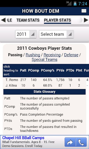 - StatSmack - our stat-based trash talking app that arms you with irrefutable data to send to your friends on why the Cowboys are better than any other team on the planet.