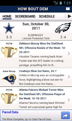 © 2011 StatSheet, Inc. All rights reserved How Bout Dem is part of the StatSheet Network and is not affiliated with or endorsed by the Dallas Cowboys or the National Football League. Certain scores and statistics copyright ¬© 2011 by The Sports Network. Any commercial use or distribution without the express written consent of The Sports Network is strictly prohibited.