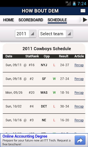 - The Cowboys's full schedule with quick-view access to full game boxscores and player stats