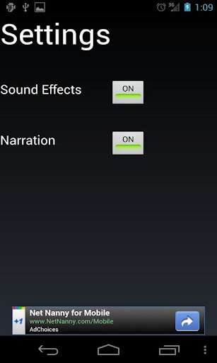 Other features- The ability to turn off sound effects, narration or both.