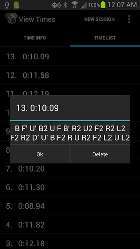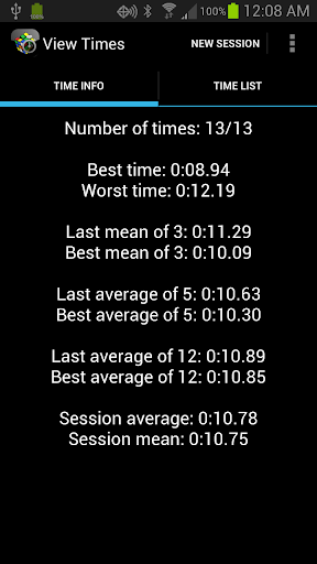 This is the new CubeTimer app for Android 4.0+ devices. This app has a really fast and responsive timer, scramble generators for all WCA puzzles, and average calculators. Some additional features include inspection countdown, penalty support, time sessions, as well as customizable scramble settings. This app is perfect for the serious speed cuber!