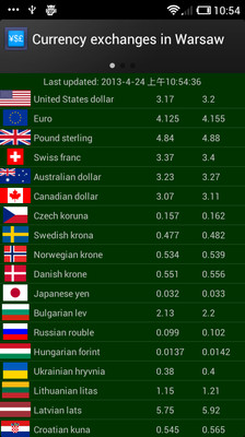 The application provides the latest exchange rates from one of the best currency exchange in Warsaw! Great for when you travel to Poland and need to get or calculate the latest exchange rates.