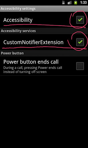 インストール後、Androidの設定で「ユーザー補助」を有効にしてください。「ユーザー補助サービス」の項目に「CustmoNotifier Extension」が表示されているはずなので、こちらも有効にしてください。これらが有効になっていないとアプリは動きません。