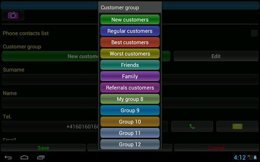 - customers management: contact data, groups, descriptions and notes,