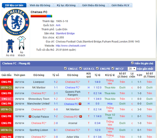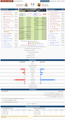 - Thống kê theo thời gian, trong khoảng nào của trận đấu của một đội hay ghi bàn, phạt góc...