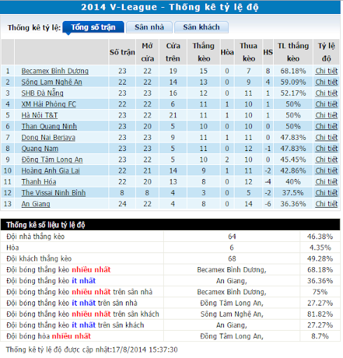 - Danh sách đội thắng kèo nhiều nhất theo từng giải