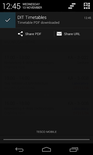 * Data is stored locally so you can view your timetables even when the DIT server is down.
