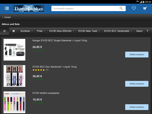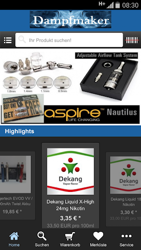 Es ist so weit, ab jetzt können sie mit der Dampfmaker App von Dampfmaker.de Ihren Einkauf bei uns schnell und bequem von der Couch aus mit Ihrem Smartphone oder Tablet durchführen. Hier finden sie alles das, was sie wie gewohnt auch in unserem Shop finden. Sie benötigt neues Liquid, neue Verdampfer, Akkus oder Zubehör?