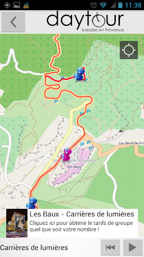 Daytour vous propose des balades clé en main, depuis votre lieu de vacances en Provence. Suivez les itinéraires et bons plans en chemin. Chaque point d’intérêt est commenté, bénéficier de remises et avantages chez chaque partenaire du réseau: Domaines, musées, monuments....Téléchargez, suivez l'itinéraire et dégustez!