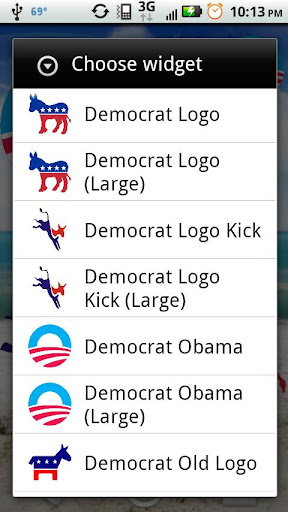 Are your a proud supporter of the Democratic Party? Show off your pride with Democrat Widgets! Like stickers, widgets are a great way to decorate your phone. Includes various styles and sizes of Democratic logos.