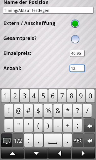 Set the base data (hourly wage, rights of use ...) of a new calculation and add any number of items.