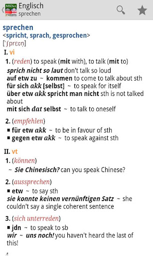 * Jump from one language direction to the other with just one click: from English => German to German => English and vice versa. Access linked entries, equally with just one click