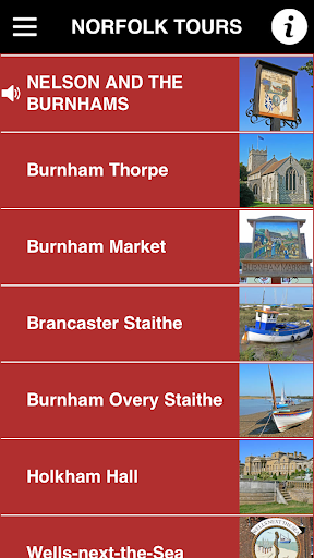 BURNHAMS: Burnham Thorpe, Burnham Market, Brancaster Staithe, Burnham Overy Staithe, Holkham Hall, Wells-next-the-Sea, NORWICH: Norwich Castle, Assembly House, Guildhall, Suckling House and St Andrew's Church, St Andrew's Hall and Blackfriars' Hall, Norwich School and Cathedral Close, Maid's Head Hotel, NORTH WALSHAM: Paston Grammar School, Barton Broad, Happisburgh Church, Mundesley, Trunch, Wolterton Hall SWAFFHAM: Bradenham, Hilborough, Swaffham and Strattons Hotel, North Elmham GREAT YARMOOUTH: Nelson Museum, Town Hall, Row 57, Wrestler's Inn, Great Yarmouth Minster, Nelson's Monument.