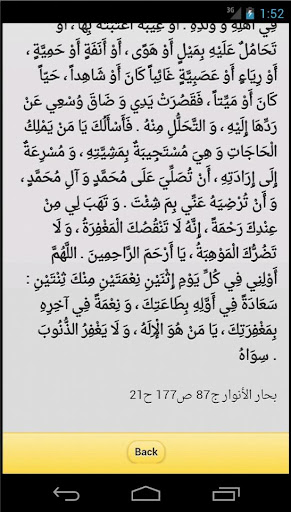 Doaa of Days is designed to run under Android OS, it is completely safe and tested to available for you. The UI of App contain the main page that shows up the week days, when you touch one of days, it will go to the day's page which contain of Doaa that day.