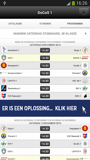 De ClubApp van Docos biedt alle officiële uitslagen, programma’s, standen en afgelastingen van de club én de competities waarin Docos vertegenwoordigd is.