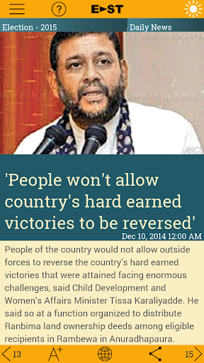 East packs your daily dose of news, entertainment, features, pictures, videos and much more in a simple and delightful interface. It allows you to personalize your feed, so you only read what interests you. East also gives you the liberty to share content through the platform of your choice. You can now sit back and enjoy reading your favourite Sri Lankan newspaper, in English, Sinhala or Tamil, even if your phone doesn't support the language.