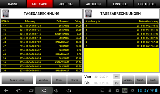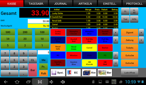 Touchscreen Tablet Kassensoftware für verschiedene Shops.