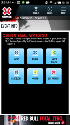 - Video Highlights: Watch the best runs, tricks, and clips from X Games, then share them quickly and easily with your friends