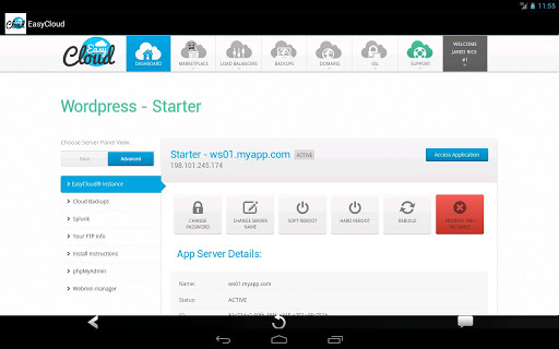 Launch Wordpress, Joomla, Drupal, SugarCRM, vTiger, Magento and hundreds of other applications in the cloud, straight from your Android Tablet! Manage over 5,000 features of your app server powered by Webmin API. All servers are 100% powered by Rackspace Cloud. A Rackspace account is not required to use EasyCloud and signup is free.