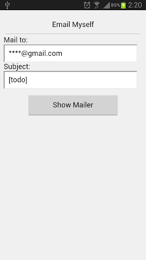 使い方は簡単です。メルアドと基本的な件名を記入して「Show Mailer」ボタンをタップするだけです。それ以降、いつでも同じメルアドと件名でメールソフトを起動することができます。