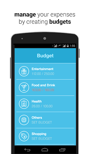 Expense Box – Money Manager allows you with an option of Budget by which you can set your expense budget according to the category, so that each time you will receive a notification whenever your expenses crosses your predefined monthly budget.
