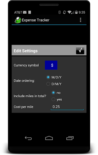 Expense tracker includes international support by letting you select from different currency symbols and pick the date format.