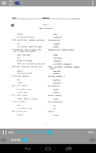 Amharic Basic Course (Level 1) by Audio-Forum is a full-course PDF audio-book. Listen to the audio with or without the text, quickly navigate to lessons from the table of contents, and use bookmarks to mark specific pages.