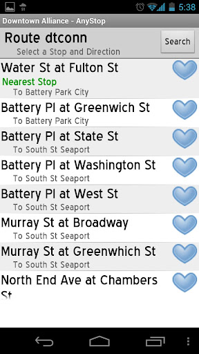 AnyStop shows all routes and all stops for each route. Find the routes and stops you use the most and favorite them for quick access.
