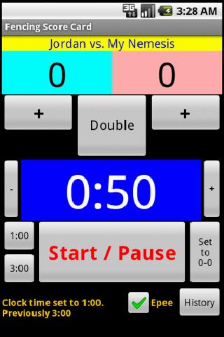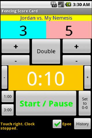 Easily direct any bout with this free fencing scorecard app. Quickly select bout time and begin keeping score. Even email bout results when you're done!