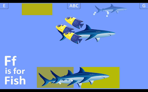 ★★★★★ - "My almost-2 year old loves this game. He already knows several letters from pushing them and seeing what happens afterwards. The program is simple. Press a letter from the alphabet. The program says the letter and then allows interaction with various scenes (i.e. F for fish brings him to a screen where fish swim across the screen. He can touch the fish and move them to interact). Any teacher will tell you that hearing + seeing + doing is great for learning. For parents not wanting to abandon their children to a device, feel free to use the scenes to practice counting and colors as well."