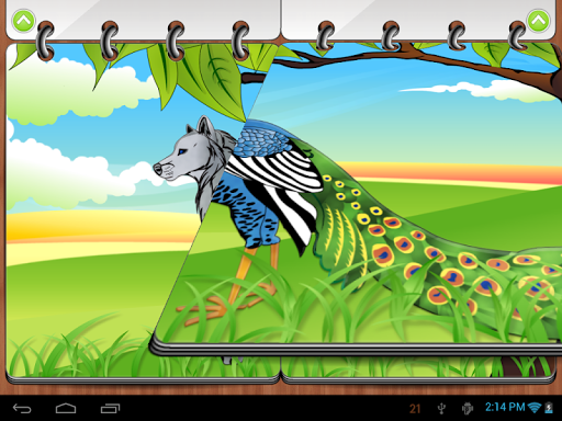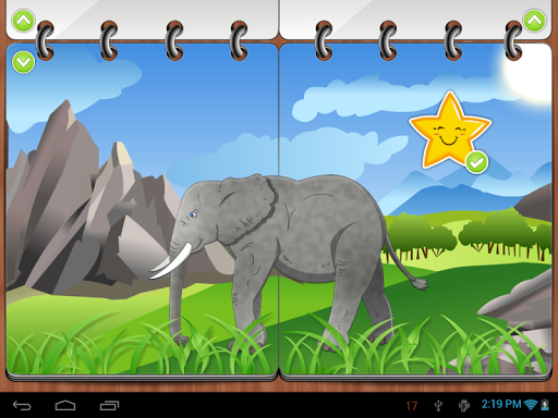 Flip and Match Funimals is a fun puzzle game with animals for kids of age 2 and above. Flip and Match Funimals contains 15 colorful pictures of animals (bear, bison, donkey, elephant, hippo, horse, lion, llama, monkey, panda, peacock, rhino, tiger, wolf, zebra) arranged in a flipbook manner. The goal of the puzzle game is to find and match the right animal halves. A rewarding yellow star is given each time two halves, of the same animal, are successfully combined.