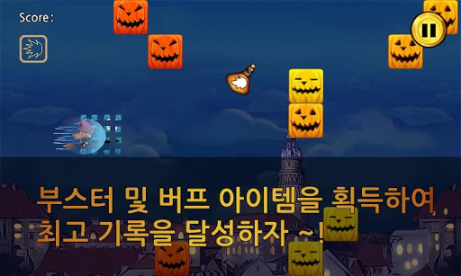 오랜 시간동안 호박과 충돌 하지 않고 마녀가 멀리 비행 하여 높은 점수를 기록하여 높은 순위를 달성하는 게임입니다.