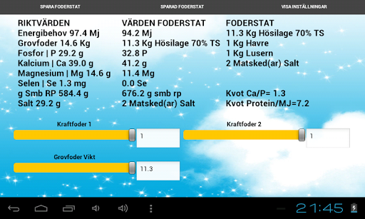 Observer att applikationen ger riktvärden för hästens foderstat utifrån de inställningar du gör. Foderstat applikation skall användas som ett hjälpmedel tillsammans med dina egna observationer och kunskaper om hästen.