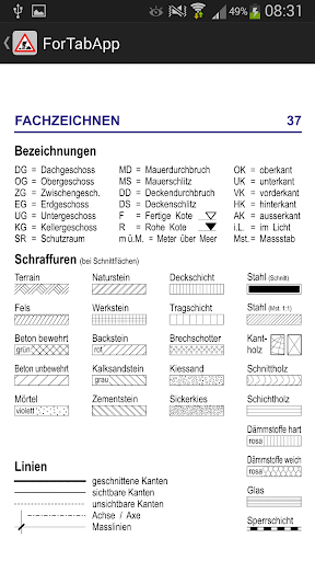 ForTabApp >> Formeln + Tabellen für das Bauhauptgewerbe ist ein Nachschlagewerk für Baufachleute, empfohlen von der Abteilung für Berufsbildung des BIGA (neu: SBFI) auf Antrag der eidg. Fachkommission für Unterrichtshilfen und Baufragen (Sept. 1989).
