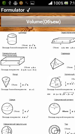 "FORMULATOR(MATH)" - это новое приложение, созданное для студентов/школьников, которое содержит список большинства тригонометрических/геометрических/математических формул! Теперь не нужно рыться в интернете в поиске нужных формул. Отныне всё в одном приложении!
