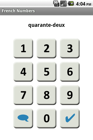 Simple yet effective app that helps you learn your French Numbers; enter any number from 0 to 42 (1000 in the Paid Version), and the sound for that number will be spoken and the word displayed. Need to hear it again? Simply press the repeat button on the left.