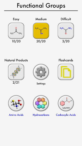 The most important app for organic chemistry students includes 80 functional groups, the classes of organic compounds (hydrocarbons, ethers, esters, etc.) and natural products (amino acids, carbohydrates, lipids, etc.).