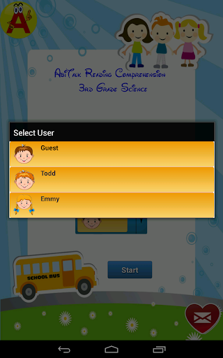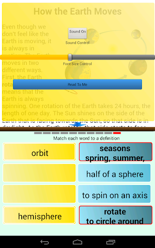 **THIS IS THE FREE VERSION. TO ACCESS THE FULL APP, PLEASE PURCHASE THE FULL VERSION.** This reading comprehension app has twenty stories about science. Each story has about 250 - 400 words. Each story introduces new vocabulary and concepts, and is followed by a set of exercises that measure the student's comprehension. The exercises include multiple choice questions, true/false questions and matching exercises that ask the student to match words or concepts with their definition, or create compound words. The app allows unlimited individual users, and provides detailed reports on each student's progress. There are two modes: Practice Mode and Test Mode. In practice mode, the student is given visual and audio feedback as they answer each question. You can listen to the passage, question, and answer. By tapping the text you want to hear, the app reads aloud either the entire passage or just one word from it, depending on what you select. This app helps develop reading, vocabulary and comprehension skills. List of included stories: 1. Phases of the Moon 2. The Woodpecker 3. How Seeds Travel 4. All About Energy 5. Twinkle Twinkle Little Star 6. The Striped Zebra 7. Magnets 8. The Colorful Rainbow 9. How the Earth Moves 10. Busy Bees 11. The Weather Forecast 12. Grasslands 13. Reflection and Refraction 14. Insects are Invertebrates 15. Hot and Cold 16. The Digestive System 17. Tropical Rainforests 18. The Tundra Biome 19. Fossils 20. Soil This app is ideal for self-paced learning or home schooling. You should encourage your child to work at his or her own pace, and make learning fun! PLEASE CONTACT US If you have questions, problems, suggestions or complaints, please contact us: support@abitalk.com. Abitalk is a member of Moms with Apps, a collaborative group of family-friendly developers seeking to promote quality apps for kids and families. Recommended Ages: 7-9 Categories: Reading