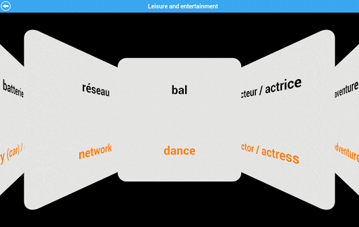 This innovative app has beautiful flash cards with coverflow view which can be viewed either by French to English or English to French.