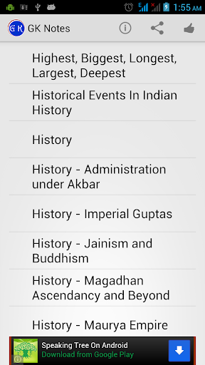 “GK Notes”android app contains short notes on various topics of general knowledge.