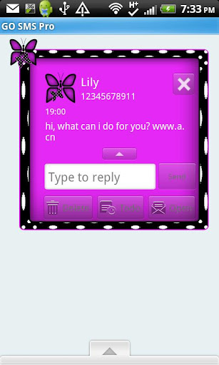 -Custom Font Colors (if you do not like the font color that the themes comes with, you can customize the theme font and font colors in the settings menu under the "advanced" tab in Go SMS Pro. This can be done with ANY Go SMS Pro theme).