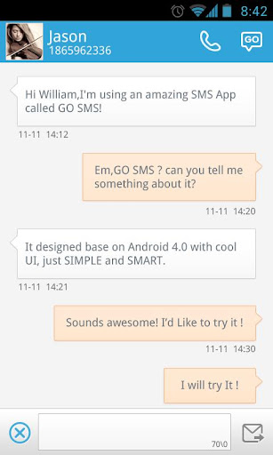 GO短信加强版免费短信插件,能让你通过网络发送免费消息。不产生任何的短信费用。