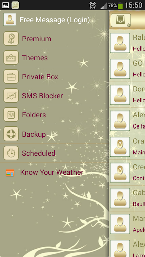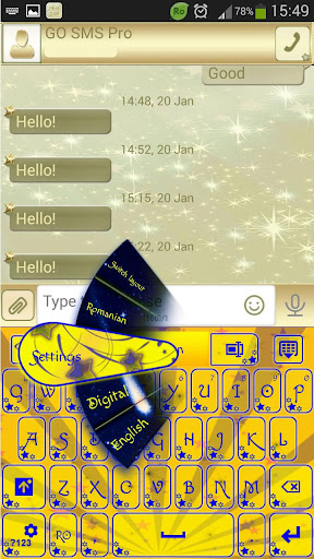 让所有的小工具定制的GO短信加强版黄星主题的短信布局. 举一个星光灿烂的新外观,您的智能手机或平板电脑这个黄色的主题涵盖的微小的星光闪闪. 你的经验,同时发短信会恒星!