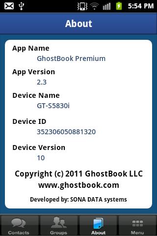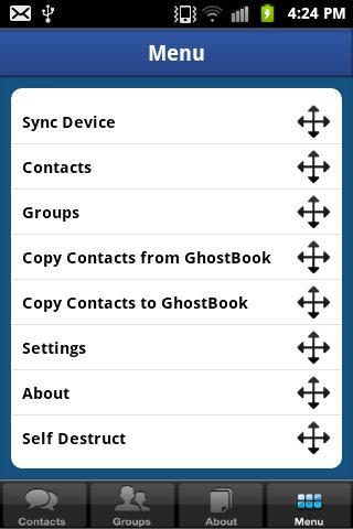 GhostBook is a cloud-based contact book where you can store your contacts easily and safely. No more prying eyes if you lose your phone, plus this provides a convenient way to sync all your contacts to a new phone should you purchase a new one or replace an old one. You can add, delete, or dial contacts right from the app, bypassing your phone's Contact book. You can upload contacts from your phone's contact book to GhostBook, and you can download from Ghostbook to your phone. Group contacts is an easy way for business to manage a group of contacts for all your employees and push them all out to employee's smart phones.