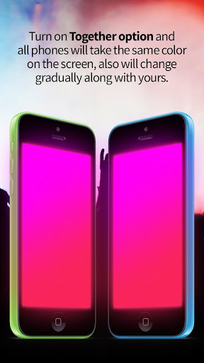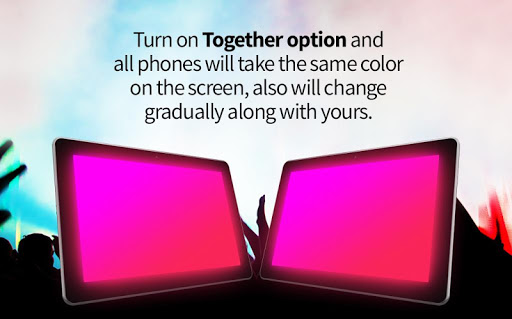 Turn it on to all your concerts and private parties and invite all your friends to download it too! Turn on the “Together” option and all the phones will take the same color on the screen changing gradually along with yours! It will be amazing, all of you with a single changing color at the same time!